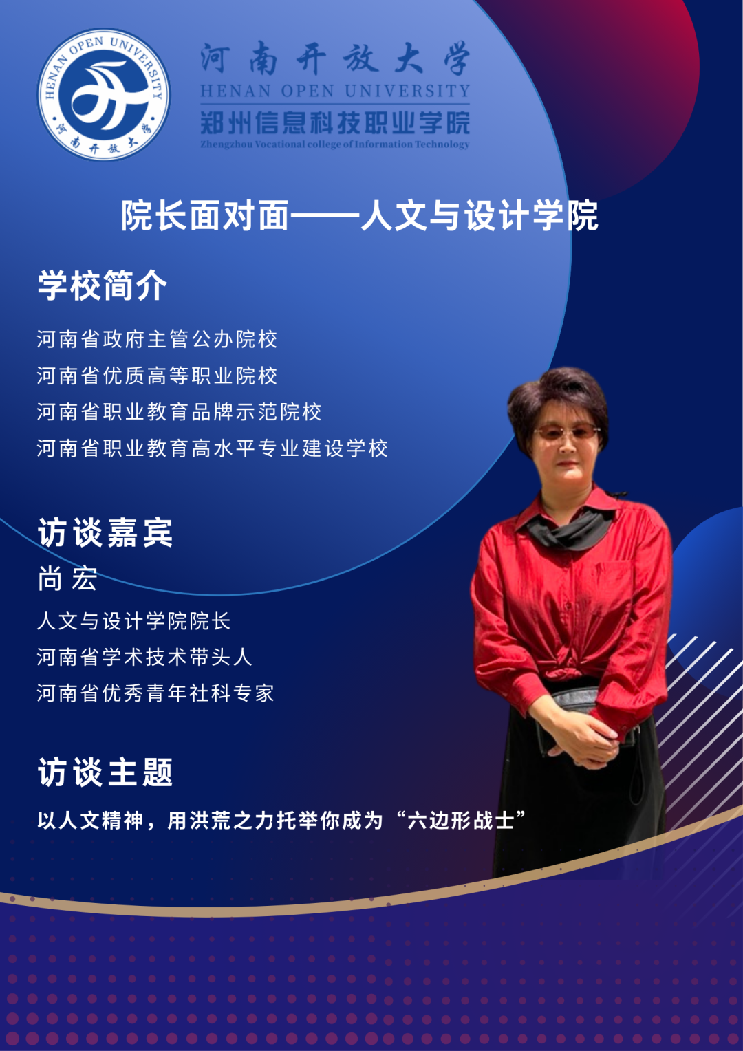 大河网讯 郑州信息科技职业学院人文与设计学院怎么样?都有哪些专业?郑州信息科技职业学院“院长面对面”今天带大家走进人文与设计学院。院长亲自坐镇,化身你的高招志愿填报专属“志愿军师”,用干货满满的解读,为你拨开迷雾。