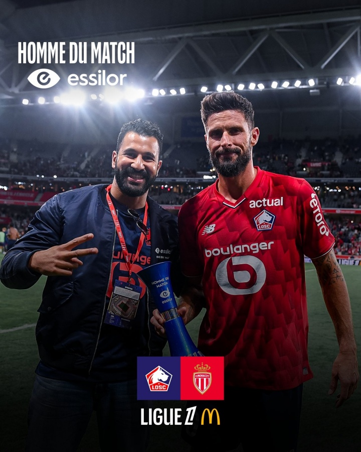 直播吧08月25日讯 法甲第2轮,里尔主场1-0击败摩纳哥,38岁吉鲁补时绝杀带走3分,赛后当选全场最佳球员。